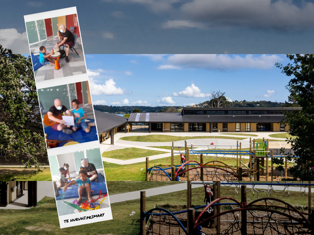 Raukatauri Music Therapy Trust has been running music therapy sessions in schools on Waiheke Island since 2019, with Alex taking over the programme in 2020. Alex spends the day at Te Huruhi Primary School, where he works with students from Te Huruhi, and students who are transported from Waiheke High School and Waiheke Primary School, in both individual and group music therapy sessions. The Waiheke schools have referred 12 students for music therapy, ranging from new entrants to high school age, and with a variety of complex disabilities, including Down syndrome, autism, anxiety, and rare genetic disorders.